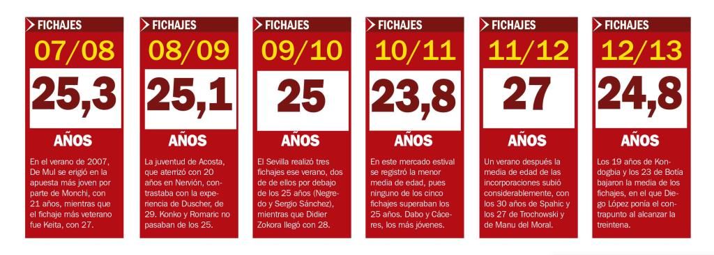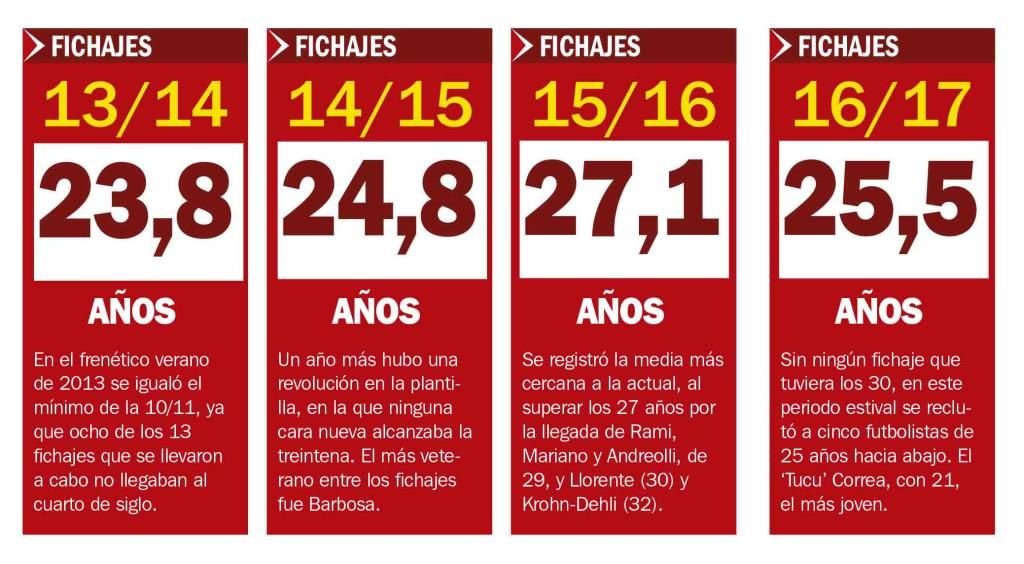 No obstante, hasta el momento esta teoría no ha cristalizado en la práctica a tenor de las contrataciones realizadas por ahora, pues predominan las incorporaciones de efectivos con recorrido, como refleja el irrefutable dato de que las siete caras nuevas sevillistas suman la media de edad más alta de la última década en el mercado estival.