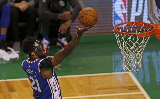 Los 31 puntos y 11 rebotes del pívot camerunés encarrilan una eliminatoria que viaja ahora de Philadelphia a Toronto, donde se disputarán el tercer y el cuarto partido (miércoles y sábado)