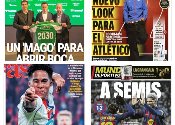 PortadasEl nuevo mago verdiblanco, sufrimiento con premio para el Barça, el Atleti tiene nueva estrella...así vienen las portadas