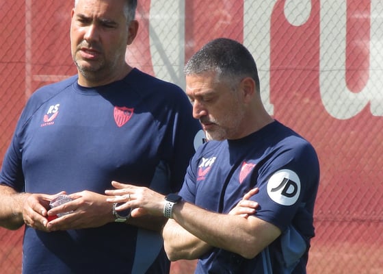 Sevilla FCCaparrós busca en Navas el aliento para la final del domingo con el respaldo de Orta y Del Nido