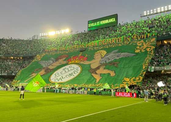 Real BetisNatan se va de fiesta: cánticos del Betis a todo volumen y los béticos pidiendo su renovación