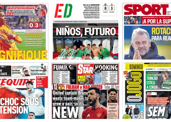 PortadasLas portadas deportivas del domingo 26 de enero: El pimer hat-trick de Mbappé, la Supercopa de fútbol femenino y la cantera verdiblanca