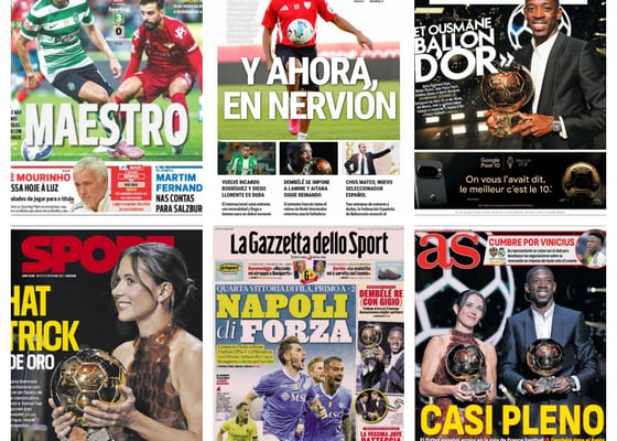 PortadasLa gala del Balón de Oro, la llegada de Chus Mateo a la selección, la operación de Gavi... así vienen las portadas deportivas del 23 de septiembre