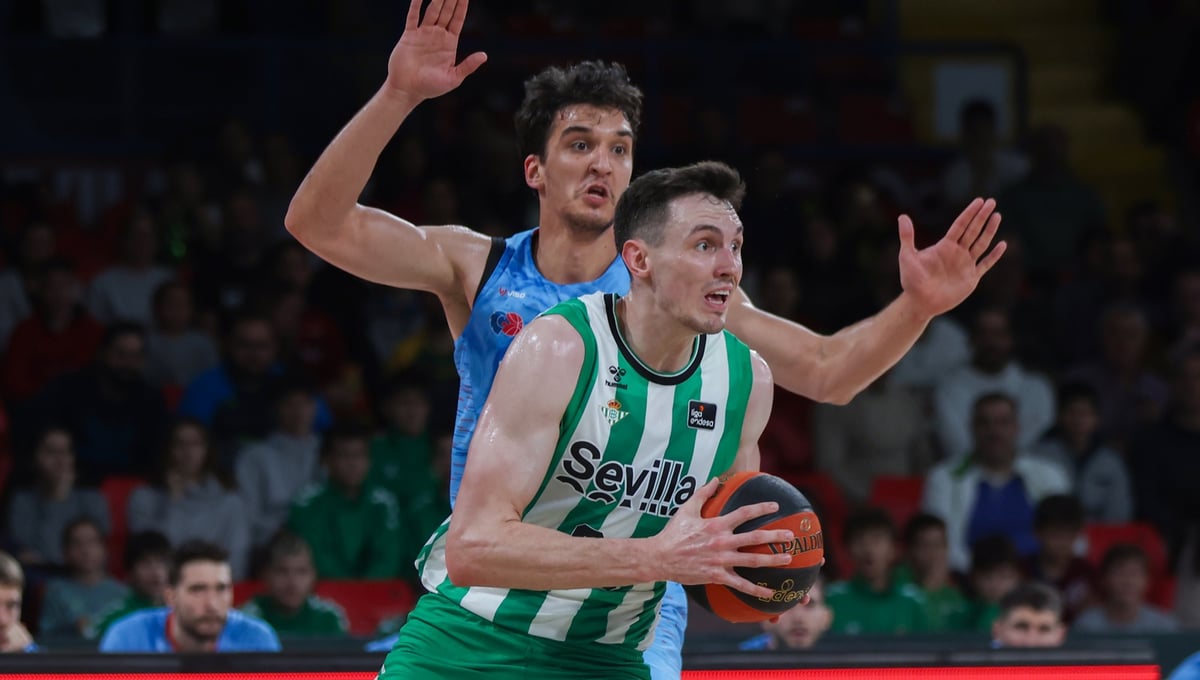 Rodion Kurucs, ala-pívot letón del conjunto bético, fue el protagonista de un primer periodo en el que anotó tres triples sin fallo pero que empañó con un codazo alevoso sobre el serbio Marko Lukovic que se le señaló como falta antideportiva pero bien pudo costarle la descalificación directa.