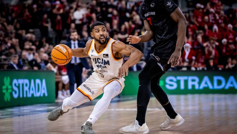 De Julius, autor de 23 puntos, y Devontae Cacok, clave en los últimos minutos, fueron los mejores del UCAM; mientras que por el Covirán destacaron Matt Thomas (17) y los ex béticos Lluis Costa (15) y Babatunde (15).