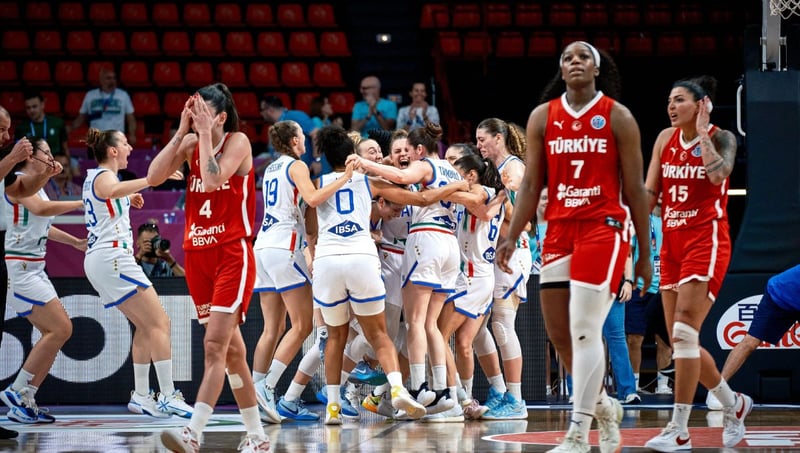 A pesar de ello, la turca Goksen Fitik tuvo en sus manos el triunfo del partido, pero su triple no entró y dejó el triunfo en el lado italiano, que disputará su primera semifinal después de 30 años ante la ganadora del Bélgica-Alemania -que se juega hoy- de cuartos de final.