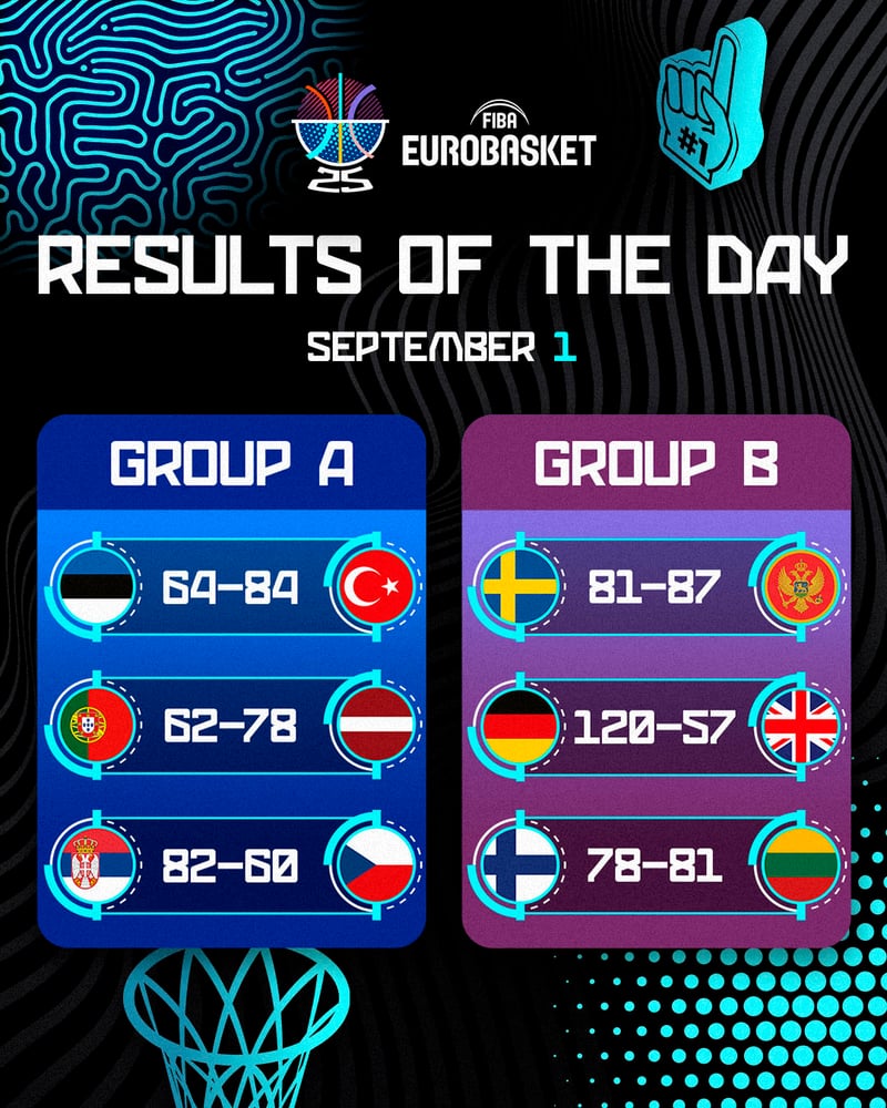 Eurobasket 2025 | Resultados y clasificaciones de los grupos A y B tras la jornada de hoy 1 de septiembre en el Campeonato de Europa de baloncesto
