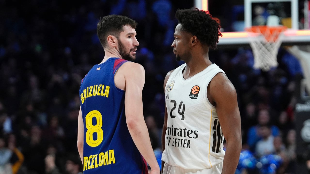 Darío Brizuela y Andrés Feliz, frente a frente durante un Barça-Madrid de la Euroliga 2026.IMAGO