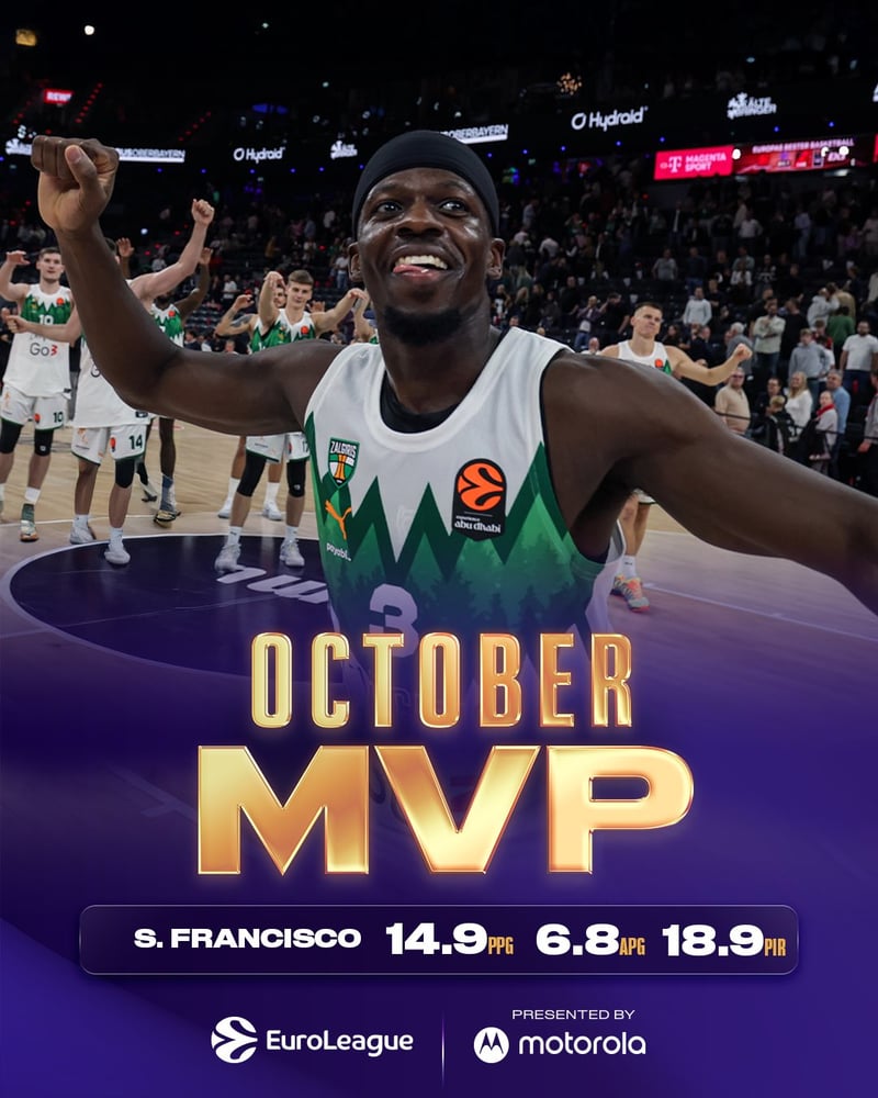 Tras las ocho primeras jornadas de la Euroliga ya tenemos al primer galardonado, en este caso con el premio a MVP del mes de octubre. Según ha hecho oficial la competición continental, es el base francés del Zalgiris Kaunas, Sylvain Francisco, el elegido para recibir tal reconocimiento a mejor jugador de este comienzo de campaña.