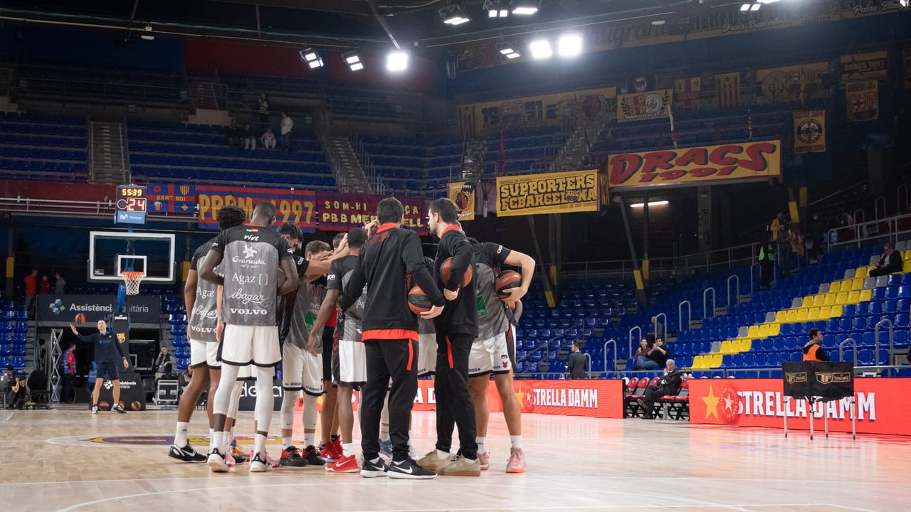 Los jugadores del Covirán Granada, en el Palau.Fundación CB Granada