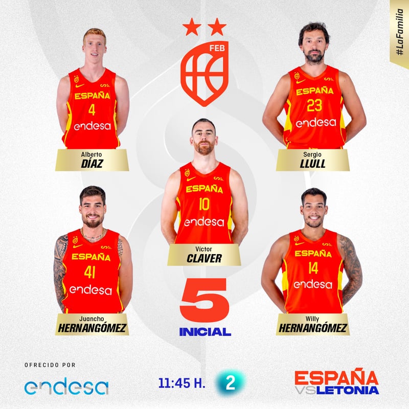 España tiene argumentos de sobra para confiar en la victoria. La nueva generación, esa formada por los Usman Garuba o Santi Aldama y liderada por Juan Núñez, combina a la perfección con la 'vieja guardia' de Victor Claver o Sergio Llull y liderada por un Rudy Fernández que agranda su leyenda.