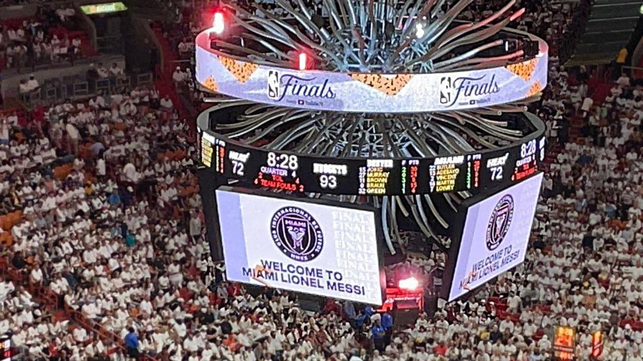 A la espera de que Messi sea presentado, lo cual ocurrirá sin lugar a dudas por todo lo alto, anoche desde la NBA dieron su particular bienvenida al campeón del mundo en Qatar 2022 a través de las Finales que se están disputando entre Denver Nuggets y Miami Heat.