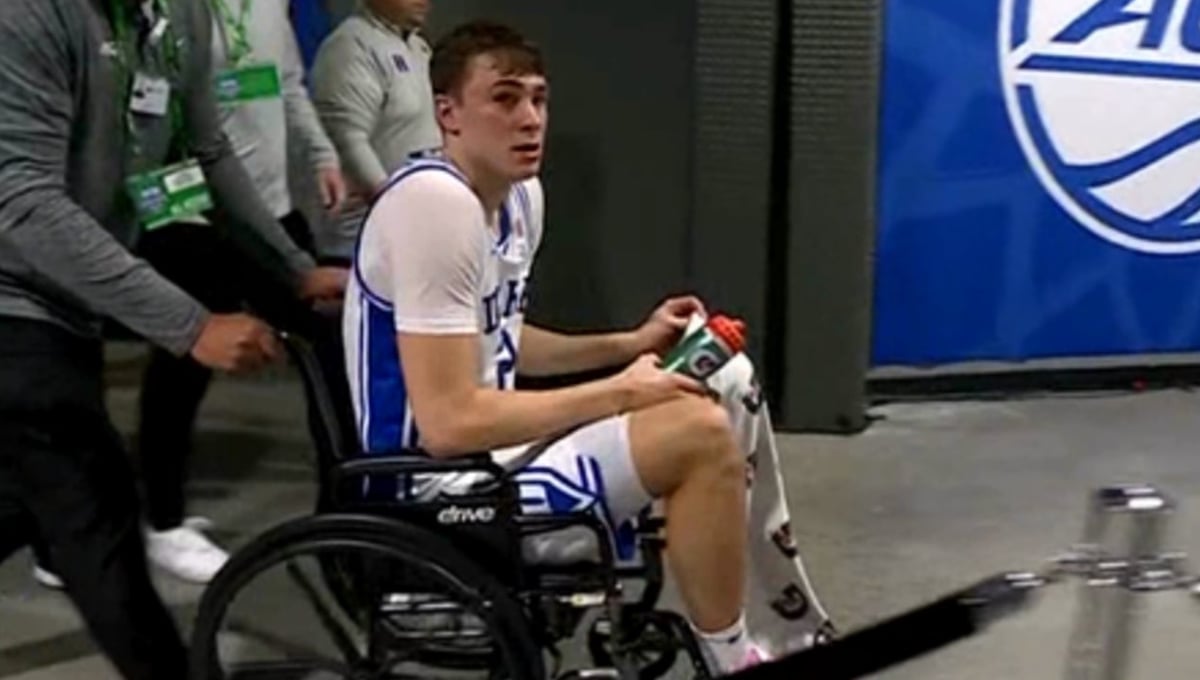 Cooper Flagg, abandonando la cancha en silla de ruedasNCAA