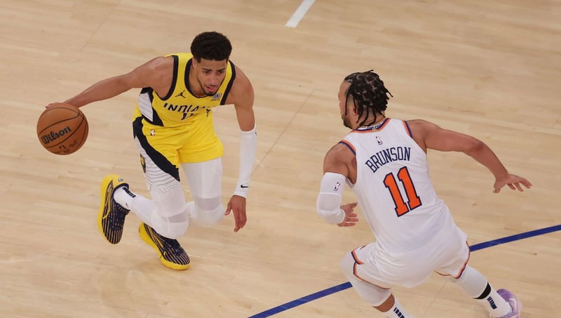 El último de ellos llegó a falta de 34 segundos para el final. Pese a ello, el marcador era de 123-118 y balón para los Knicks. La estrella local, Brunson, perdió el balón y los Knicks confiaron en su hombre más caliente, Nesmith, para que se la jugara de nuevo. Y acertó con un sexto triple casi consecutivo a 22 segundos del final (123-121). Los Knicks no aprovecharon su ataque y, con 7 segundos por jugarse, Tyrese Haliburton subió el balón y metió lo que pensó era un increíble triple que les daba la victoria. La revisión confirmó que estaba pisando la línea y que la canasta era de dos. Prórroga con unos Pacers incontenibles y con unos Knicks dudosos con ese desenlace.