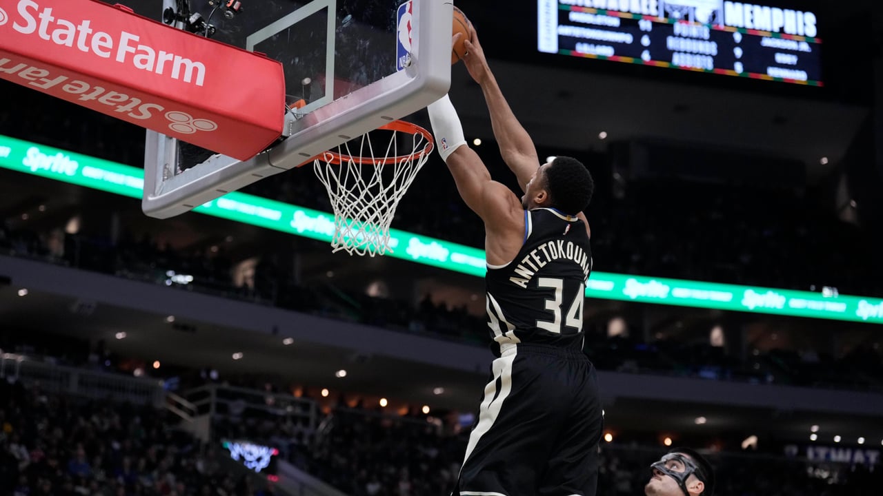 Giannis Antetokounmpo realizando un mate ante los Memphis GrizzliesCordon Press