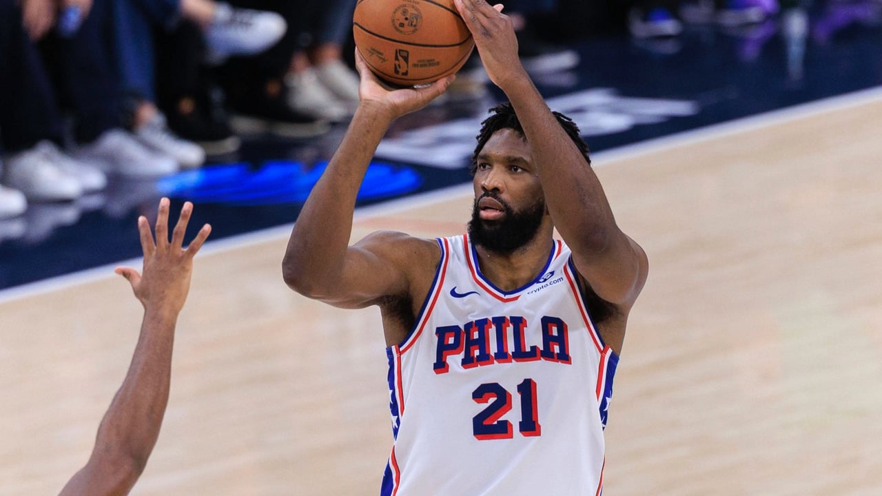 Joel Embiid, lanzando a canasta durante un partido del curso 2025-26.IMAGO