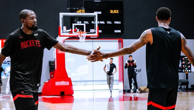 Durant, de momento, es el que está asumiendo la responsabilidad en este proceso y, con una media de 30 puntos en sus dos primeros partidos con los Rockets, todo el juego circula en torno a él.