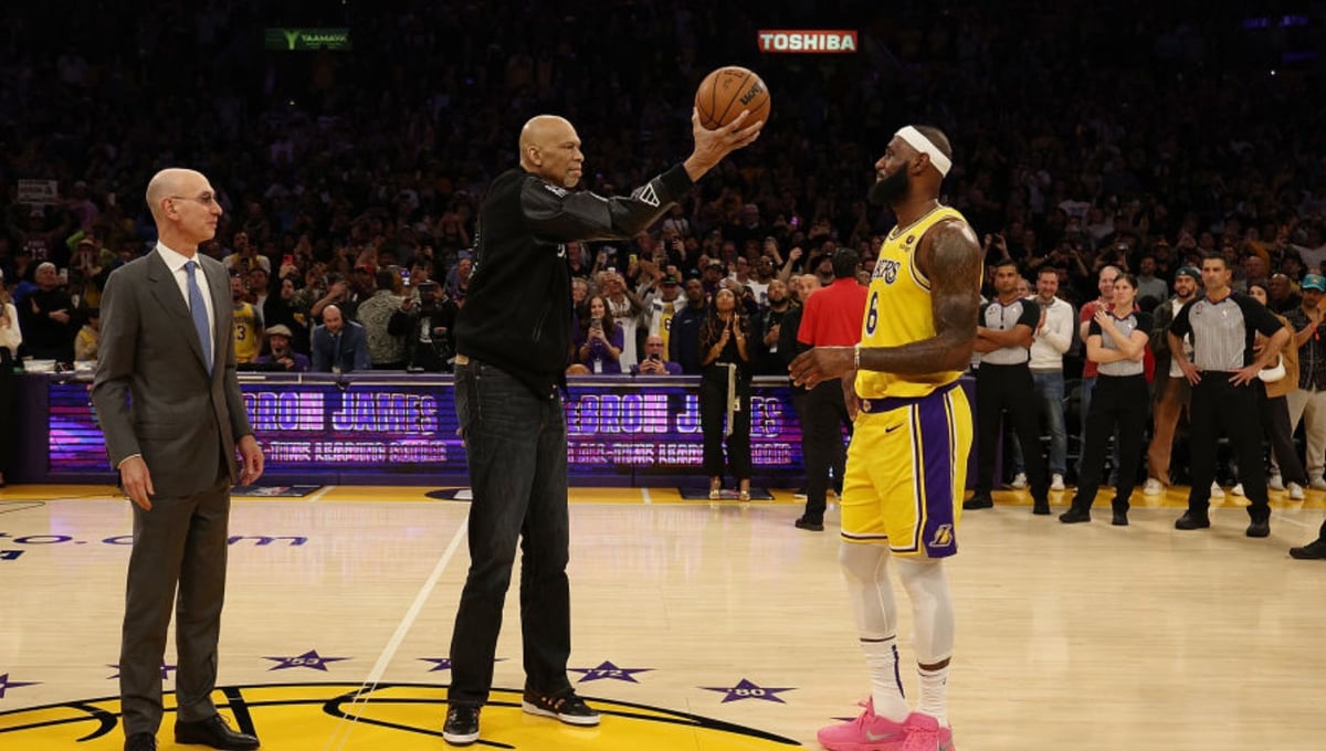 Abdul-Jabbar estuvo presente este martes en el partido de los Lakers para ver en persona cómo LeBron le arrebataba el récord. El encuentro contra los Thunder se interrumpió momentáneamente para homenajear a LeBron y Abdul-Jabbar posó junto a él en ese tributo.