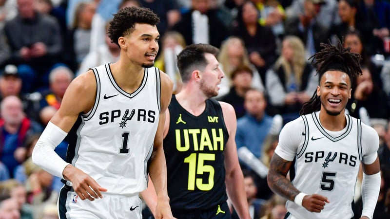 Los 34 puntos de Victor Wembanyama y los 23 de Stephon Castle cimentaron el triunfo de los San Antonio Spurs en un partido de toma y daca en Salt Lake City. Chris Paul y Julian Champagnie fueron clave en el decisivo último cuarto con 9 puntos cada uno y así llegó la cuarta victoria seguida de la franquicia texana, un racha que fueron incapaces de lograr a lo largo de la temporada pasada. Por contrapunto, los Utah Jazz (4-13), con el peor balance del Oeste, quedan con esta derrota oficialmente fuera de la NBA Cup.