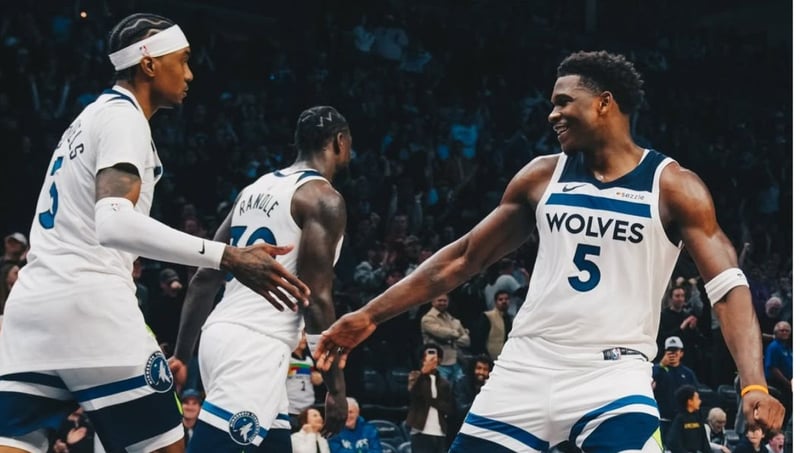 Con cuatro jugadores por encima de los veinte puntos y tres con más de 25, el conjunto de Minneapolis demostró el juego coral que le acostumbra y que le ha hecho ganar muchos partidos. Julius Randle acabó con 28 puntos, 11 rebotes y 8 asistencias; Jalen McDaniels con 26 puntos; Anthony Edwards, con 25 puntos, 7 rebotes y 9 asistencias; Donte DiVincenzo con 22 puntos... Y Rudy Gobert, el único del quinteto inicial que no fue tan productivo en ataque (11 puntos), en cambio, dominó el rebote con 13 capturas. Edwards alcanzó los 10.000 puntos en su carrera en la NBA.