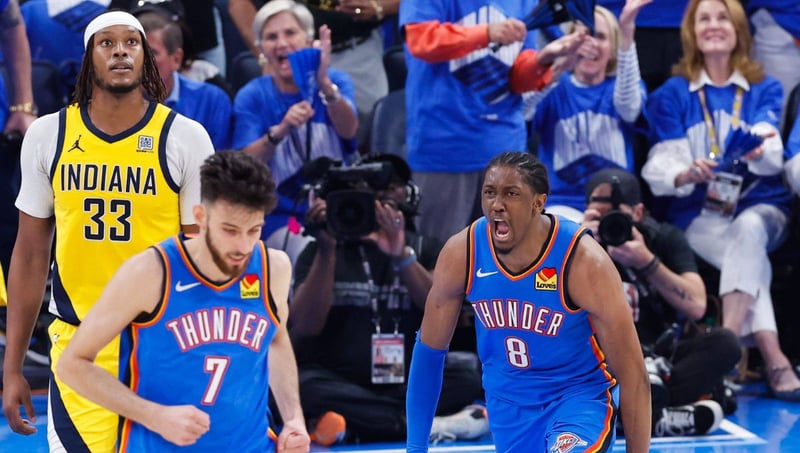 El final a esta histórica eliminatoria fue como la propia serie: dramático. Con el mejor jugador de Indiana Pacers, Tyrese Haliburton, gravemente lesionado, con un equipo herido que trató de sobrevivir a la ausencia de su héroe habitual, con muchos nervios en los Thunder de no poder desperdiciar una oportunidad única... Y con un estallido final y una celebración que durará mucho tiempo en la mente de los habitantes de Oklahoma City.