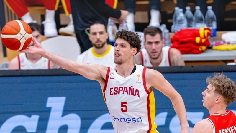 El joven debutante y Jaime Fernández lideran el primer triunfo de la selección española con Chus Mateo en el banquillo; ganaron a Dinamarca por 64-74 camino del Mundial 2027
