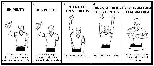 En el baloncesto hay un gesto diferente para cada infracción, tal y como recoge el reglamento.