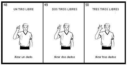 - 2 puntos: El mismo gesto del árbitro realizado con los dedos índice y corazón extendidos.
