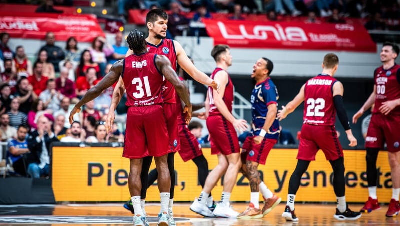 Menos problemas que ellos tuvo un UCAM Murcia que, con una gran actuación coral y menciones especiales para Rodions Kurucs, Marko Todorovic, Troy Caupain y Dylan Ennis, arrolló al MHP Riesen Luisburgo alemán, al que se impuso por 98-72 en casa para dar el primer paso en su camino hacia la Final a Cuatro.