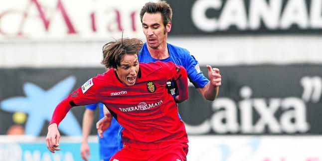 El mallorquinista Tomás Pina protege el balón ante Borja Fernández.D. Díaz
