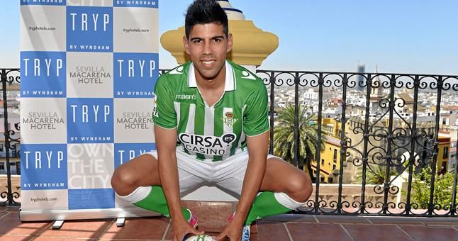 Juanfran posa como nuevo jugador del Betis.