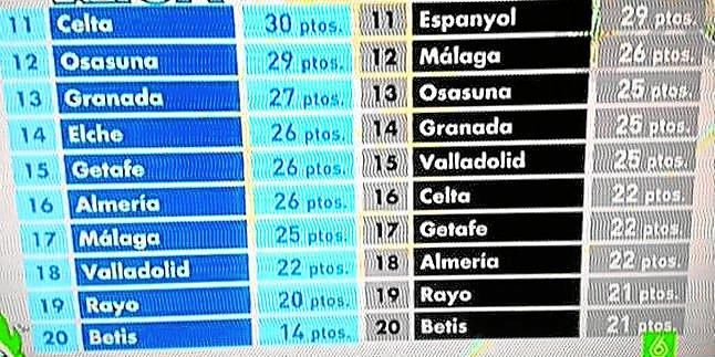 Así lo recoge el exárbitro Rafa Guerrero en su sección del programa de deportes de LaSexta, ´La Liga de Rafa´, en el que realiza una clasificación paralela a la oficial con los puntos que tendría cada equipo en caso de no mediar errores arbitrales.