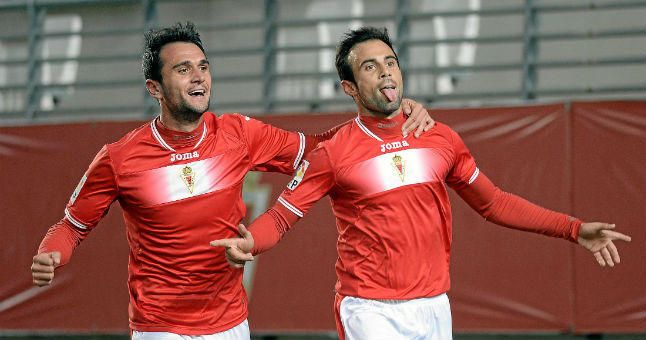 Molinero, celebrando su único gol durante la pasada campaña con el Real Murcia.REDACCIÓN