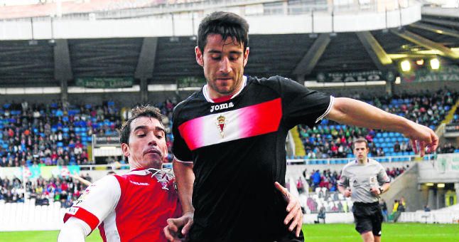 Saúl Berjón pugna por un balón con un jugador del Rácing - J. Julián Fernández S.
