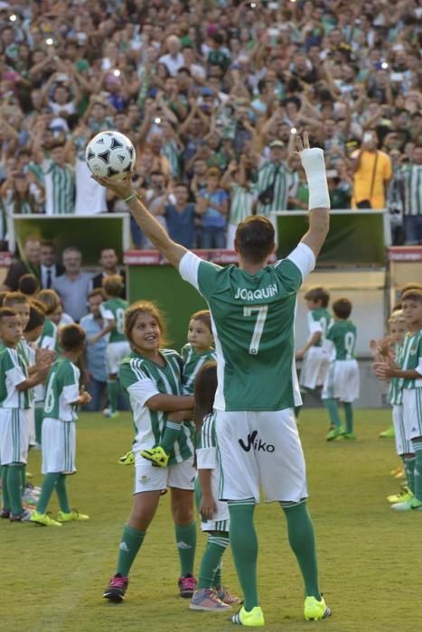 Cuando Joaquín saltó al césped del Benito Villamarín la ovación fue tremenda. Preferencia llena, y la grada de Gol Sur tuvo que abrirse para que ningún bético se perdiera la vuelta de su hijo pródigo a casa.