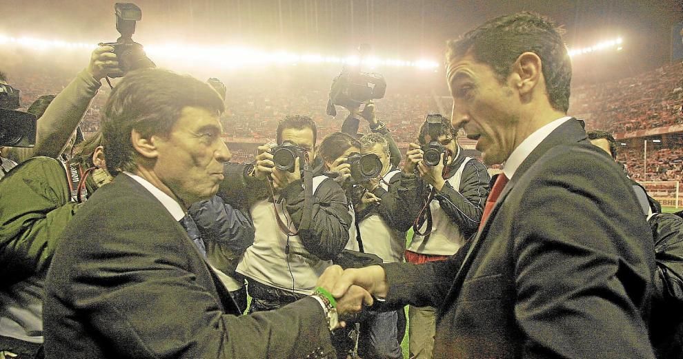 Pocas personas sienten la pasión de los derbis sevillanos como Paco Chaparro y Manolo Jiménez, ya que los han vivido desde los escalafones inferiores hasta el primer equipo. Uno como bético, aunque ha entrenado en ambas canteras, y otro como sevillista, tanto de jugador como de técnico. Varias etapas en las que ambos han coincidido en el mismo equipo o frente a frente. Además, sus únicos enfrentamientos en banquillos de Primera se han producido, casualmente, en los cuatro derbis que han dirigido al máximo nivel, a lo largo de dos temporadas. Partidos con resultados muy variados, según Chaparro por el “cambio de época” que tuvo el Sevilla entre ambas temporadas. “Una en la parte última del Sevilla de Kanouté, Alves… Un equipazo. Y la otra era cuando ya se estaban renovando.