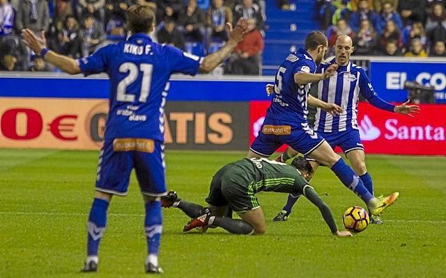 Los de Víctor Sánchez del Amo, que salieron con el canterano Álex Martínez a banda cambiada en lugar de Piccini, no estaban practicando su mejor fútbol, pero esa acción pudo haber decidido el encuentro a su favor. Al igual que una falta que llevó a cabo Llorente sobre Durmisi tras el paso por vestuarios, lo que podría haber conllevado la segunda amarilla del mediocentro alavesista y que Iglesias Villanueva decidió pasar por alto.