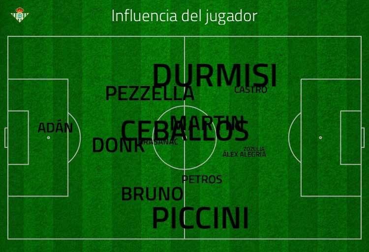 Real Betis: Adán; Piccini, Pezzella, Donk, Bruno, Durmisi; Brasanac (Petros 52'), Dani Ceballos, Jonas Martin (Nahuel 83'); Zozulya (Álex Alegría 52') y Rubén Castro.