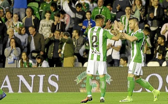 Rubén Castro celebra con Rafa Navarro el gol ante Osasuna.Isabel Morales