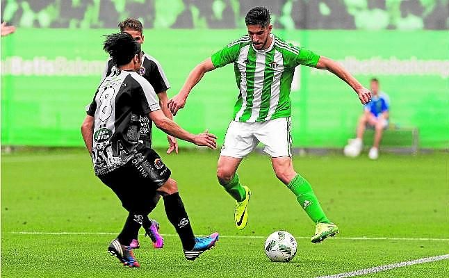 El Betis B ha puesto pie y medio en Segunda B después de superar ayer al Lorca por dos a cero en la ida de la primera eliminatoria de ascenso. Fue mejor a los puntos el filial bético que su rival, y por eso también lo fue en el marcador. Y ello, a pesar de contar con innumerables e importantes bajas, algunas de última hora, lo que llevó a José Juan Romero a improvisar un once inicial que, sin embargo, no escatimó en derroche físico.