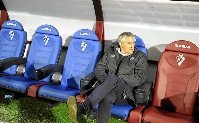Quique Setién se mostró disgustado por la abultada derrota encajada en Eibar (5-0), pero quiso ver el lado positivo al decir que su equipo había "trabajado bien", pero según él su equipo no ha sido "capaz de defender bien y les ha costado mucho "estar en el partido".