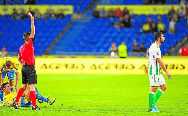 El zaguero verdiblanco podría ser sancionado con entre uno y dos partidos y se perdería los encuentros ante el Sevilla y el Leganés. Se dará la curiosa circunstancia de que a su vuelta seguiría estando apercibido, como ocurrió tras ser habilitado después de su roja en Las Palmas, y, por lo tanto, expuesto a una nueva sanción en breve.
