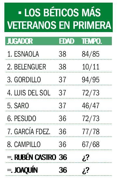 Por lo tanto, si llega a cumplir su nuevo contrato, Joaquín no sólo batirá el récord de encuentros jugados con el Betis, sino que será también el jugador de mayor edad en defender su escudo.