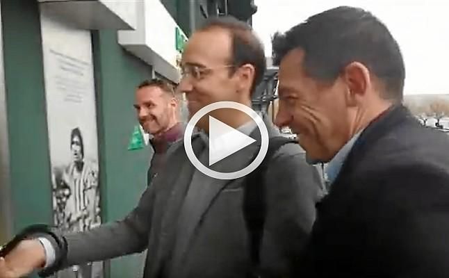 Los agentes de Fabián, llegando a las oficinas del estadio verdiblanco, en unas imágenes captadas por los compañeros de Muchodeporte.