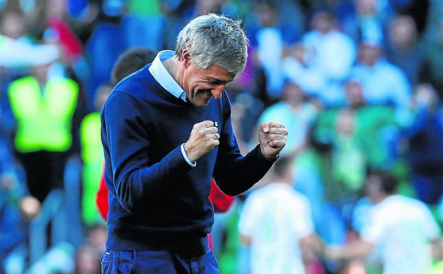 Setién, que celebra arriba uno de los dos goles de Loren, quedó satisfecho con su ´revolución´.M.H. / E.C.