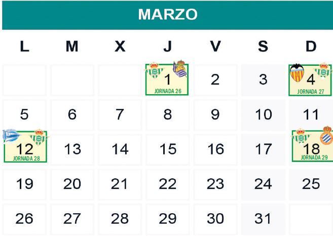 Al menos, después de un inicio de 2018 bastante duro (con el derbi cainita a domicilio y tres choques en casa contra los potentes Barcelona, Real Madrid y Villarreal, entre otros), el panorama se suaviza para los heliopolitanos, que sólo habrán de medirse en los dos próximos meses con una escuadra europea, el Valencia. Ya a finales de abril, los repechos volverán a convertirse a priori en picos exigentes, pues, tras comparecer en el Wanda Metropolitano el penúltimo fin de semana de abril para enfrentarse al Atlético de Madrid, habrá de albergar en la Avenida de La Palmera dos duelos de rivalidad regional, el primero contra un Málaga que podría ya estar entonces desahuciado y el último ante el eterno rival. A domicilio, Athletic y Leganés abrocharán el mes postrero de competición.