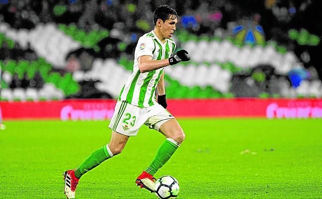 Aïssa Mandi conduce un balón durante el Betis-Espanyol.Ó. M.