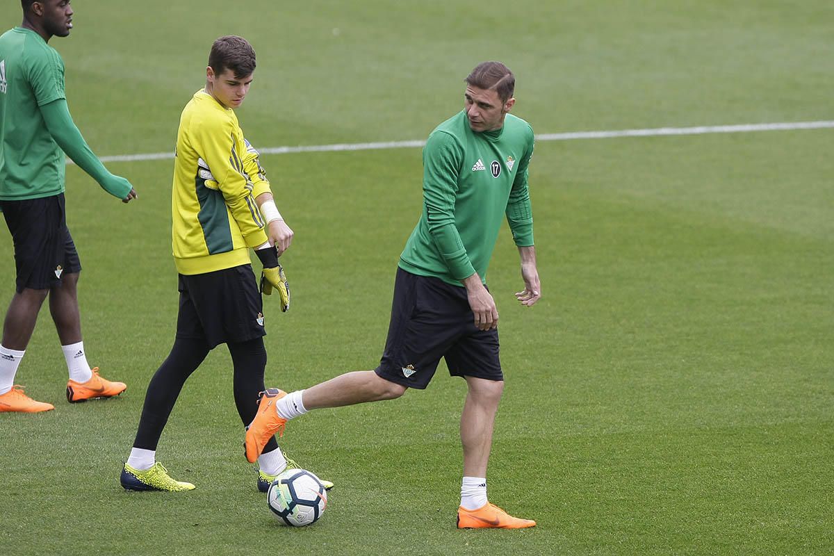 El Betis entrenó a puerta abierta en su ciudad deportiva en una sesión en la que estuvieron todos los jugadores disponibles para su técnico, Quique Setién, quien esta semana ha hecho entrenamientos con grupos reducidos por unas pruebas físicas a las que ha sido sometida su plantilla en el Centro de Alto Rendimiento de La Cartuja.