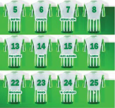 En cada inicio de temporada, los aficionados siempre quieren ser los primeros en conocer cuáles serán los dorsales de los recién llegados, qué movimientos hay, para poder serigrafiar el último modelo de camiseta. Así, en el Betis, las caras nuevas ya han elegido dorsal: ‘1’ para Joel Robles; ‘6’ para Canales; ‘12’ para Sidnei; ‘13’ para Pau López; ‘14’ para Inui; y ‘24’ para Carvalho.
