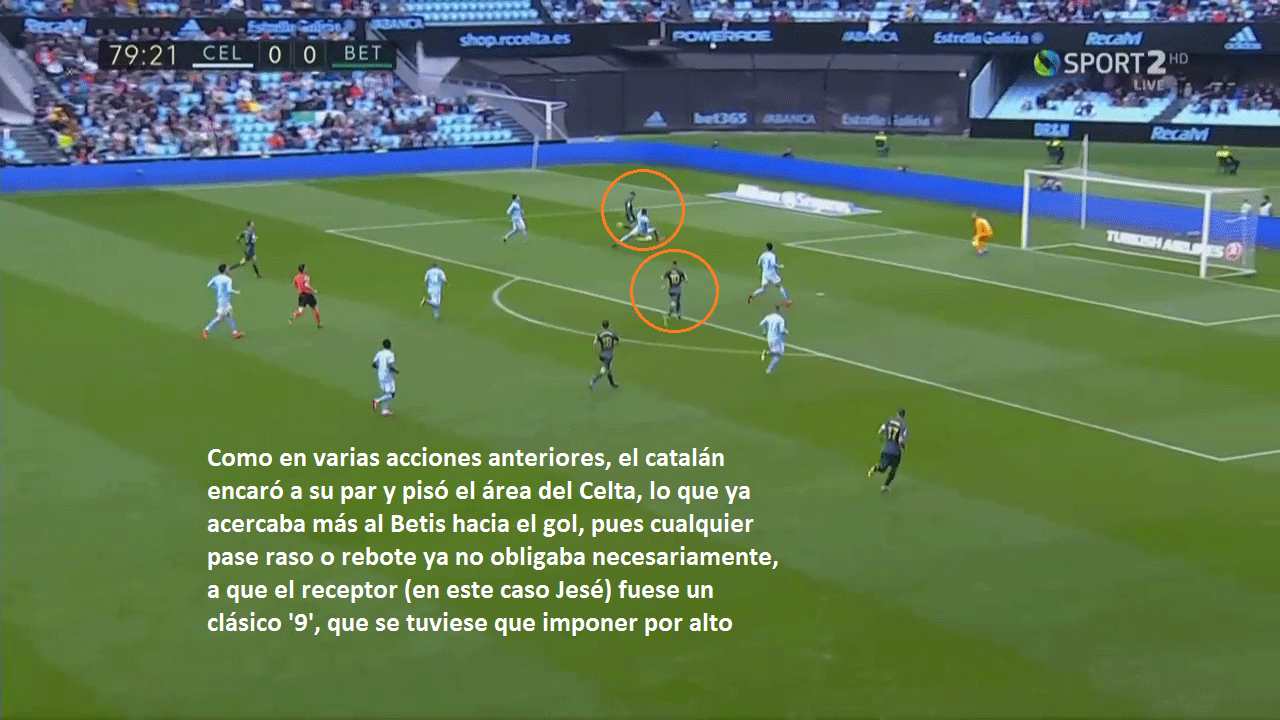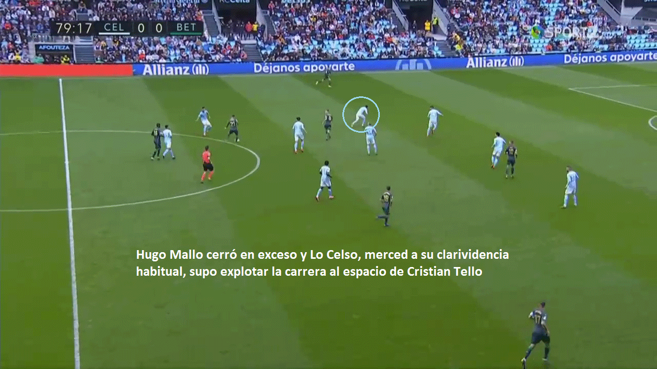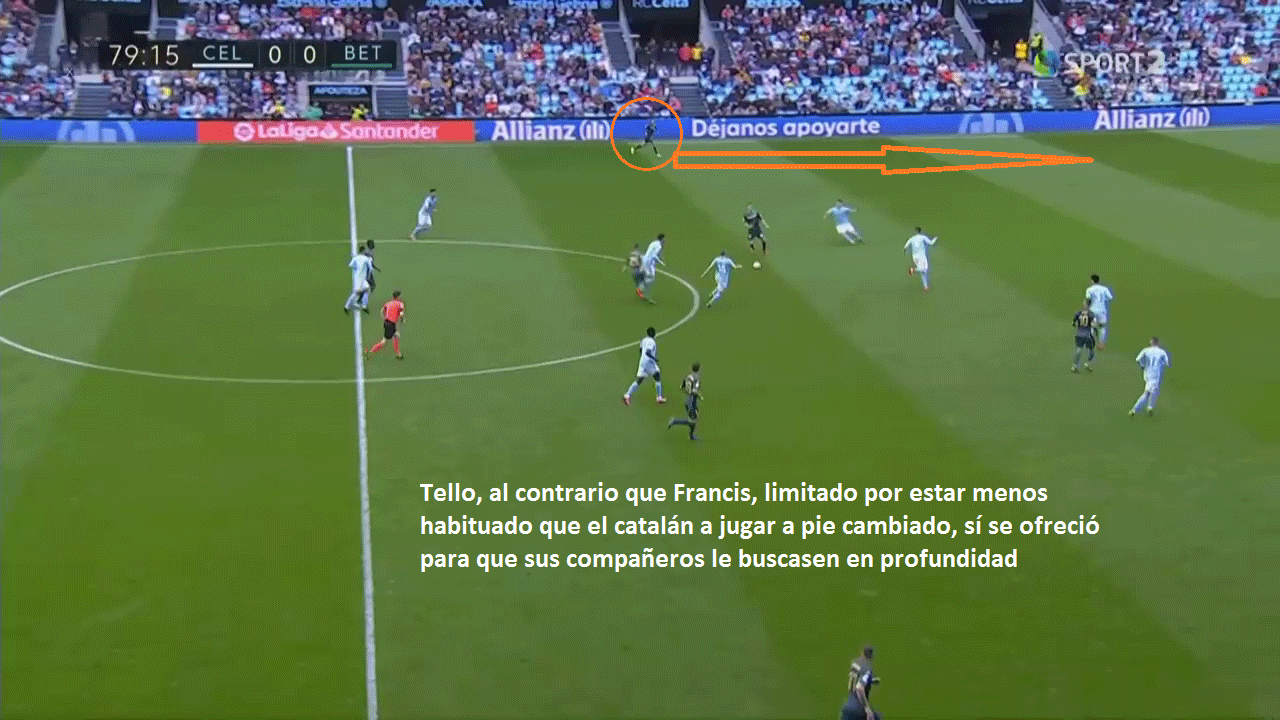 "La lesión de Francis nos perjudicó; Tello nos hizo mucho daño". Fue tan evidente que el Betis mejoró con el cambio, hasta el punto de resultar determinante para el devenir del encuentro, que el técnico del Celta lo reconoció abiertamente. Y, pese a que hay quien se ha tomado su frase de Fran Escribá como una falta de respeto hacia el canterano verdiblanco, lo que escondía la frase del entrenador valenciano era, realmente, una cuestión táctica que trataremos de analizar en varias imágenes.